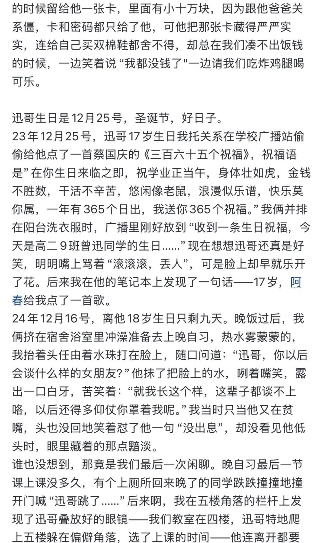 他也给自己的哥们@Weibi723,给那个梦想做救死扶伤的医生、在零用钱紧张时还给公益组织捐款的少年,写下了一封17页的长信,用过去的照片做成了一支关于好朋友的视频,让全世界都能知道@Weibi723生前那些温暖的举动。